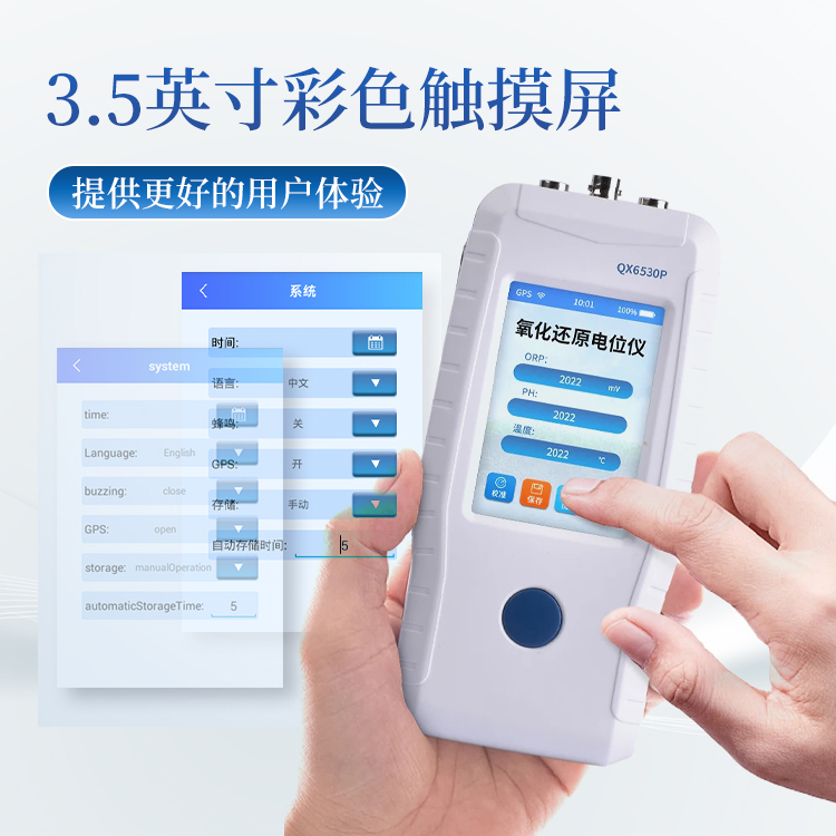 2、3.5寸彩色触摸屏,具有自动调节背光功能及设置休眠时间。